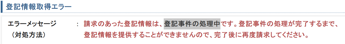 インターネットで不動産の登記情報を取得しようとしたとき、「登記事件の処理中」 と表示されて登記情報を閲覧できないことがあります。