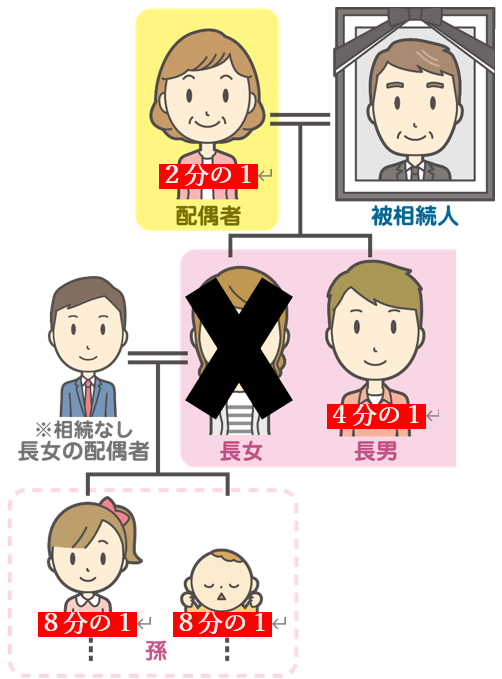 長女は既に亡くなっているため、長女の相続分(4分の1)を孫2人で分けることになるので